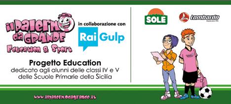 Prende il via il progetto “Education e sport” dedicato alle classi IV e V di tutte le scuole della Regione Sicilia e della Provincia di Palermo. Il progetto prevede la diffusione di un fumetto contenente disegni e messaggi formativi inerenti al mondo del calcio, della sana alimentazione e dell’ambiente. L’obiettivo è quello di educare i ragazzi sulle pratiche dell’alimentazione e dell’attività