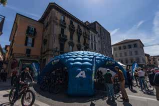 Nella giornata di sabato la UPHill, la street competition di eMountainbike, in cui batterie di 4 riders si sfideranno affrontando scalinate, ram pe e salti nel centro storico di Lecco.