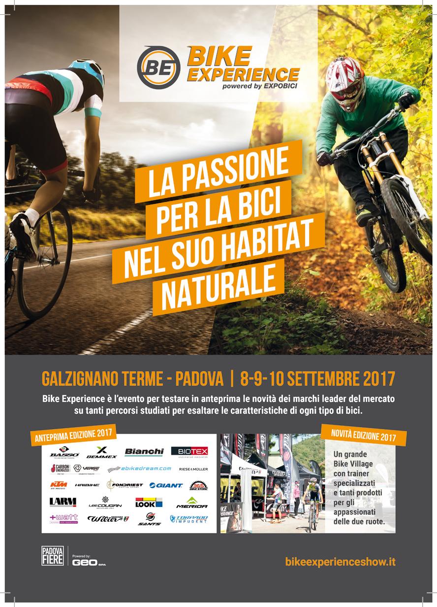 Poche settimane a Bike Experience, l’evento che ha raccolto il testimone di Expobici, e che vivrà l’8, 9 e 10 settembre a Galzignano Terme (PD) la sua seconda edizione. Nel cuore dei Colli Euganei, all’interno del prestigioso Galzignano Terme SPA & Golf Re sort, riaprirà il villaggio di quello che si sta consolidando come il primo appuntamento italiano dove trovare, ammirare e – soprat tutto – testare gratuitamente le novità 2018 dei marchi più importanti, a pochi giorni da Eurobike.