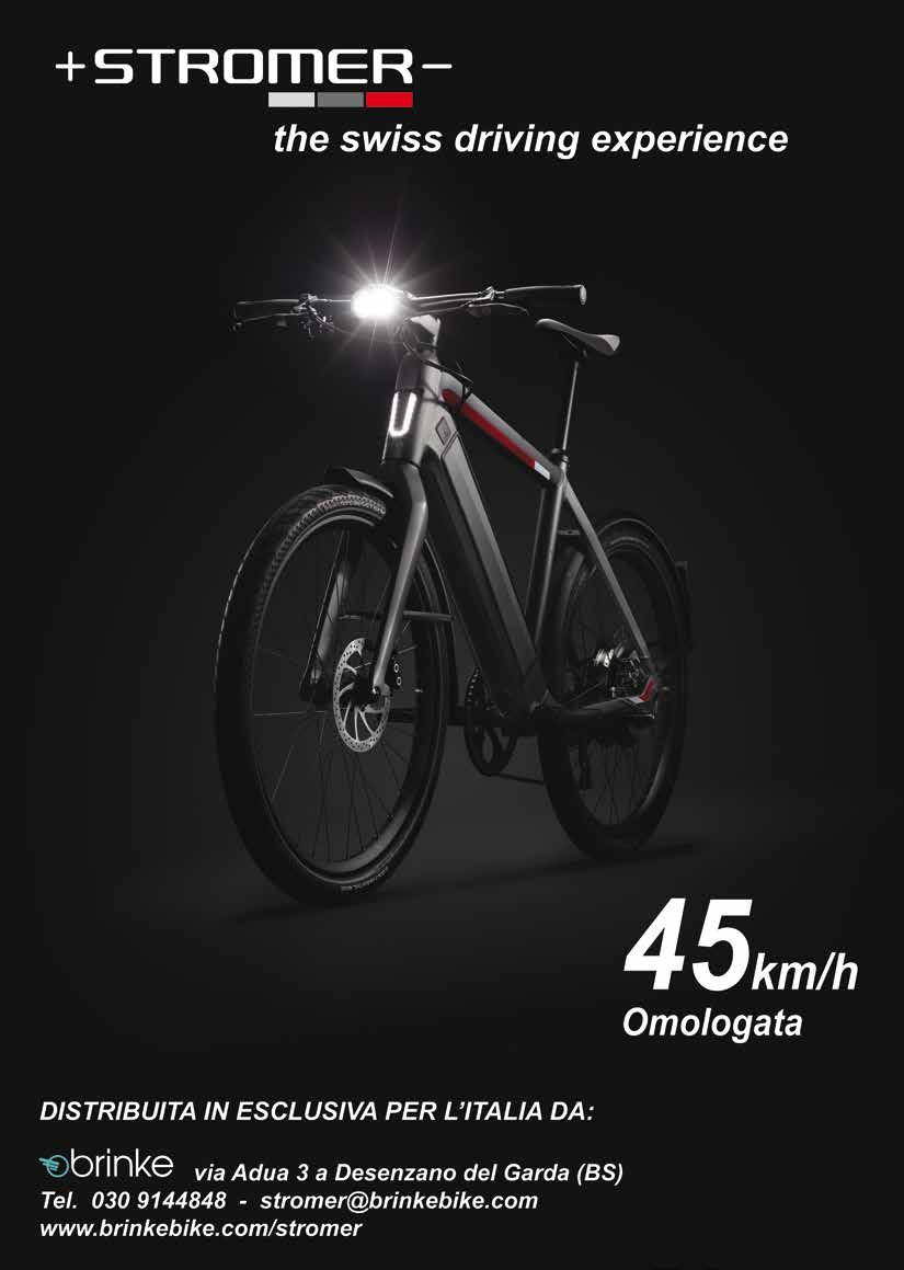 della batteria. Perfette, inoltre, di collegare la bici via Internet ed è dotata di GPS. Risultato: gli update di sistema possono essere fatti a distanza, si può regolare il motore per l’efficienza energetica individuale e in caso di furto si può localizzare la bici e bloccare il motore. Il tutto tramite una apposita App per smartphone. Per una eBike top di gamma è fondamentale la protezione antifurto, che qui è appunto completamente integrata. Il motore sviluppato da Stromer, SYNO-Drive da 500 watt, assiste il ciclista fino a una velocità di 45 km/h, ed è silenzioso. Grazie alla potente batteria con una capacità di 814Wh e alla funzione integrata di recupero dell’energia in frenata e in discesa, la bici può raggiungere un’autonomia fino a 150 km. È disponibile anche la batteria da 983Wh che permette di raggiungere distanze fino a 180 km. Stromer è distribuita in esclusiva per l’Italia da Brinke Bike (stand 309 Hall B5).