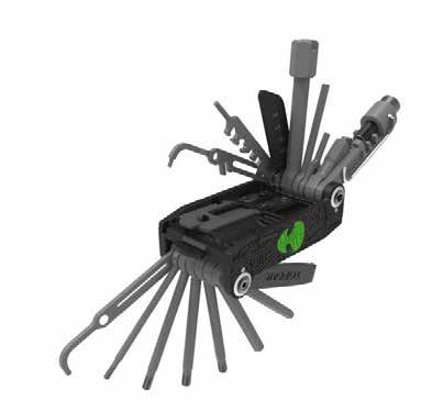 Quando si viaggi per chilometri e chilometri in bici, non si può pensare che tutto vada sempre bene e affidarsi al caso. Una dotazione necessaria per ogni cicloviaggiatore, su ogni superficie è sicuramente un multitool completo. Avere un attrezzo del genere ( e saperlo usare!) può davvero fare la differenza tra una giornata top e una vacanza rovinata. Topeak è famosa per questo prodotto supercompleto che si rinnova con la nuova versione Alien X. Questo multitool ha 38 diverse funzioni e incorpora anche chiavi tork T10/15/20/25 e 30, inoltre aggiunge una pinza per cateneMaster Link, Il design è sempre a due pezzi per la massima praticità consentendo un uso completo di tutte le chiavi, oltre a consentire una leva maggiore. Alien X è dotato di borsa per il trasporto e ha le dimensioni di 7.8x4,5x4cm.