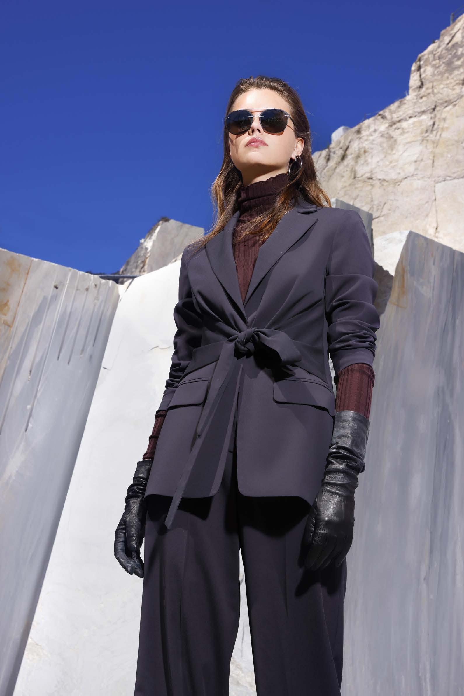 Tagliatore 0205 è un progetto in cui coesistono culture, contaminazioni ed espressioni del mondo del brand. Il marchio realizza capispalla femminili di alta sartoria, caratterizzati da uno stile giovane e di tendenza in cui persiste comunque una silhouette classica. Giacche dal taglio maschile sono tipiche di Tagliatore che per la prossima stagione PE 22 ha realizzato un tailleur doppiopetto in lino, proposto nello scatto.