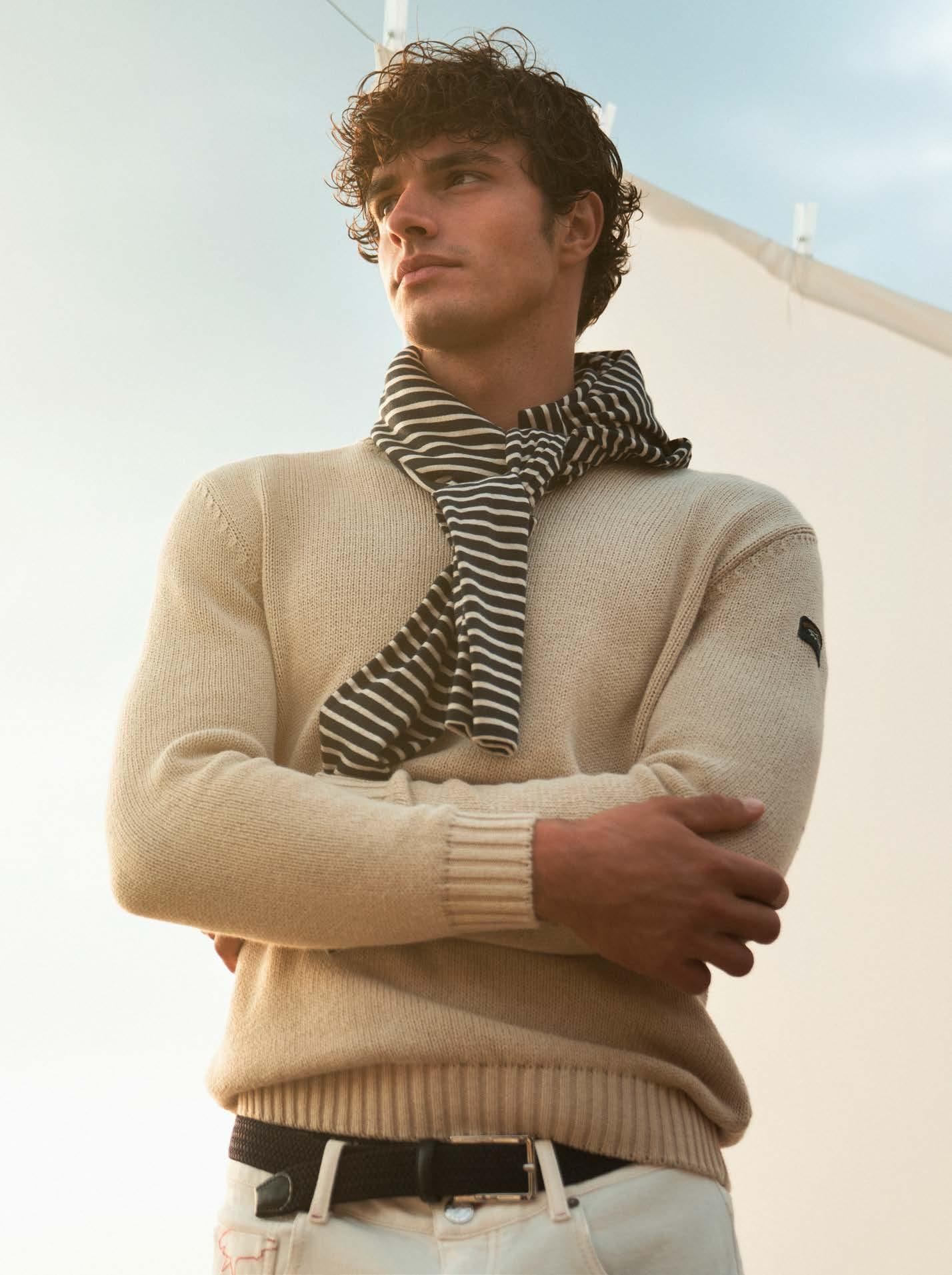 Avant toi , brand fondato nel 1994 dai fratelli Ghignione, e che crea un connubio perfetto tra arte e cashmere, presenta per la PE 23, dei capi senza tempo e senza stagionalità. Come il soffice maglione in cotone garzato, caratterizzato da una tintura in capo che gli dona unicità.