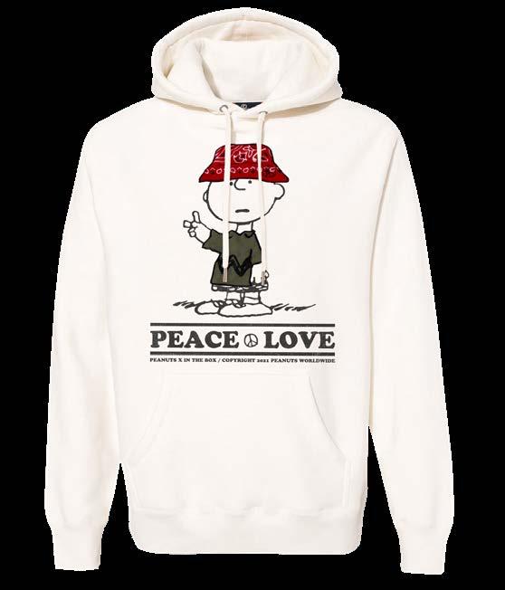 Anche in occasione della SS 23 di In the Box i personaggi di PeanutsSnoopy, Charlie Brown e Linus - tornano protagonisti per una selezione di proposte ironiche che si ispira alla sensazione diffusa di libertà e spensieratezza. Lo slogan “Peace & Love” e il simbolo della pace diventano veri e propri elementi decorativi oltre che messaggio universale veicolato da Charlie Brown & co. La capsule pone particolare attenzione al vintage e all’upcycling e, per questo, sono presenti tessuti riciclati da capi di seconda mano, bandane, camice hawaiane e militari, applicati su t-shirt e felpe.