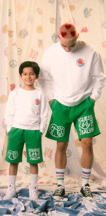 Ispirata dal film documentario “The Boy from Medellin” di J Balvin, Guess Originals ha avviato una sinergia con la star colombiana dal nome “Amor”. Un revival di felicità e positività, la collezione è un mix di colori vivaci e pastello in una varietà di tonalità edificanti che si distingue con le grafiche espressive come strisce a spirale, cuori e trifogli. Oltre ai capi iconici, come la giacca da camionista in denim e i pantaloni da carpentiere, rivisitati secondo il tema della proposta, è stata introdotta una nuova versione dei pantaloni cargo: profilo rilassato e tessuto in twill rialzato. Importante è evidenziare come questa capsule si interessi alla salute mentale per tutti. COLLABO & CAPSULE