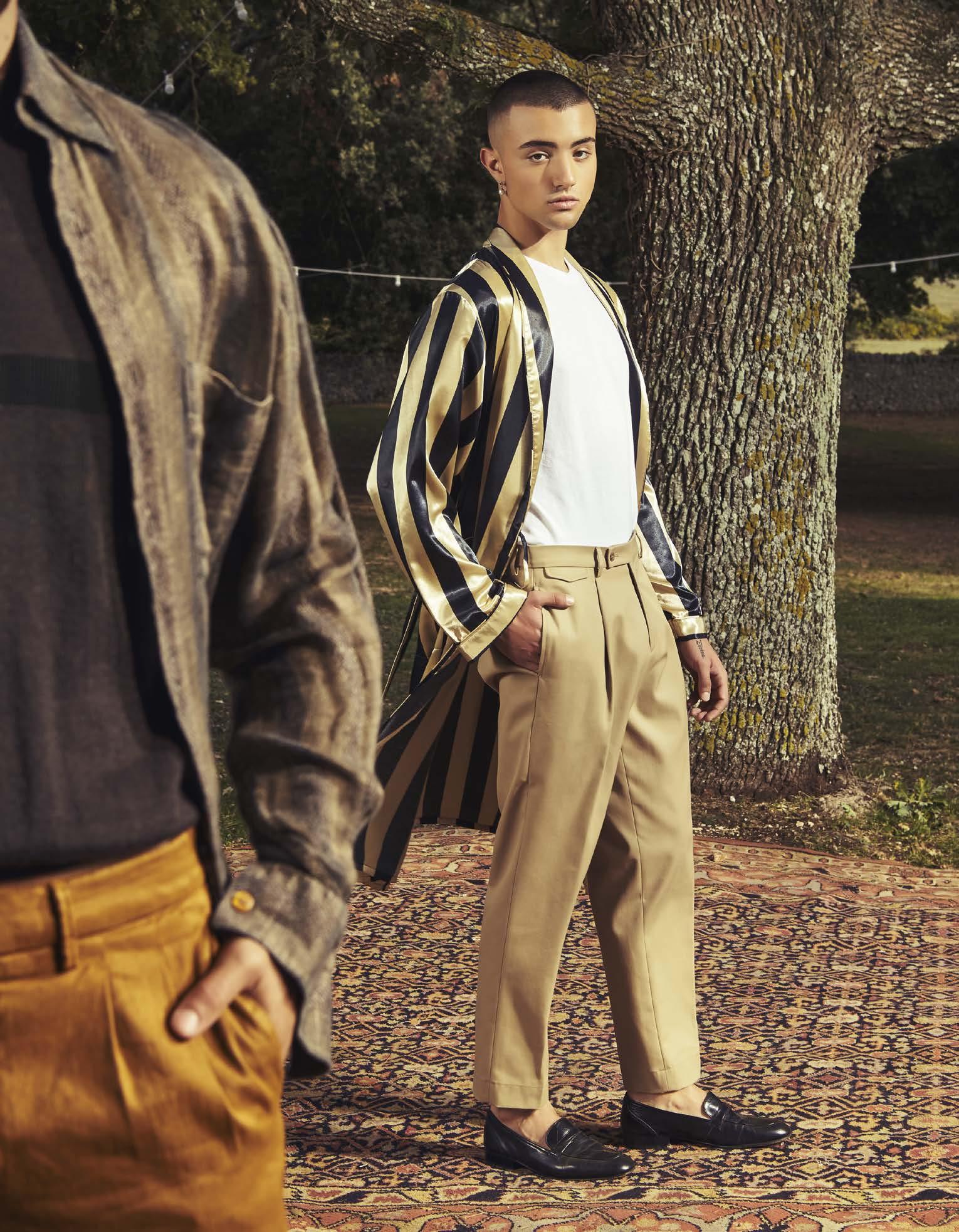 Tre moderni Romeo, nella romantica cornice di Villa Giusti a Verona, incarnano alla perfezione la filosofia della collezione Lorenzoni SS 23, elegante e sofisticata. Il nostro è un target di giovani e ricercati dandy, attenti al loro aspetto con stile, buon gusto e ironia. Un pubblico meticoloso che cerca un prodotto estremamente curato. Il cliente Lorenzoni vede la cura nei dettagli, riconosce il pregio delle materie utilizzate e dei filati esclusivi. Ma è ancora più esigente: non si accontenta di un prodotto classico ma è alla ricerca di un contenuto di tendenza, che si distingua da altre proposte più commerciali. Per questo la ricerca stilistica è fondamentale per il brand.