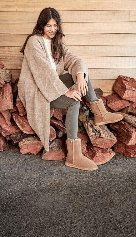 Materiali naturali biodegradabili, ricerca e innovazione sono gli ingredienti della ricetta perfetta creata da EMU Australia. Scarpe in pelle di montone australiano di prima qualità dal naturale potere anti-odore, e in lana Merino australiana, morbida al contatto con la pelle. Le tomaie sono resistenti all’acqua per assicurare protezione totale da pioggia e neve.