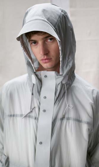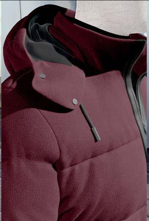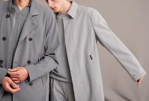 Uno stile metropolitano, sempre attento a soddisfare le esigen ze dell’uomo contemporaneo. Duno cura ogni singolo dettaglio attraverso la bellezza dei filati sartoriali come la morbidezza del tessuto matalassé di nylon con effetto stropicciato in superficie e trattamento WR, la cui particolare struttura conferisce al capo linee arrotondate.