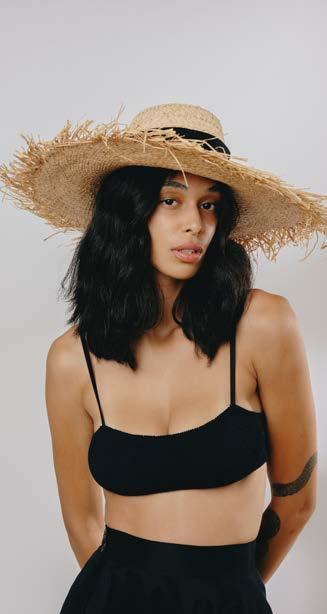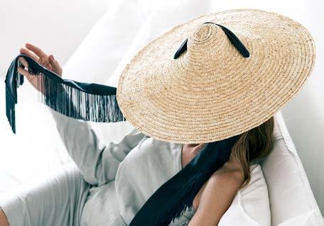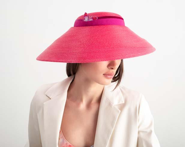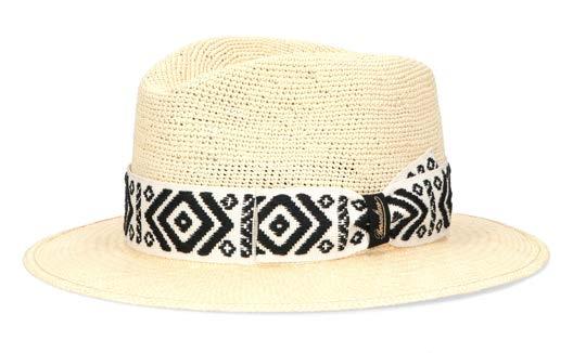Gigi Burris fonde la tradizione della produzione di cappelli con le esigenze e la personalità delle donne di oggi. Un occhio attento per i dettagli, dietro cui si nasconde la passione e la maestria in ogni piega, punto e abbellimento. Un must il modello in rafia con bordo sfrangiato e fascia fermacravatta in nastro twill nero.