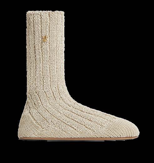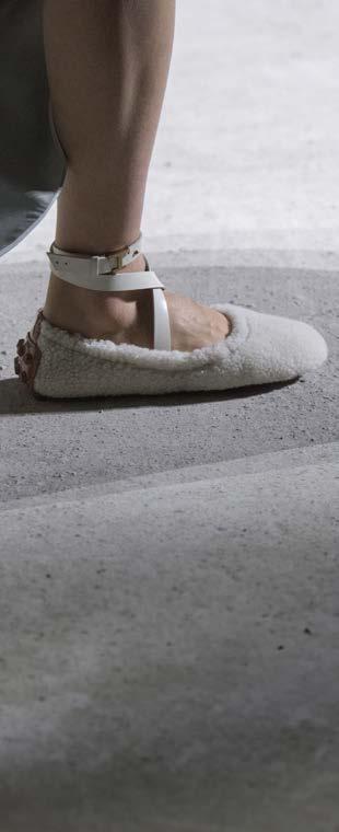 Un’eleganza raffinata e contemporanea. Tod’s racconta la sua forte identità attraverso l’alta qualità della tradizione artigianale, linee pulite e morbidezza dei materiali. La Ballerina Bubble è caratterizzata da finiture in pelle e in shearling, con lacci alla caviglia. Una palette monocromatica nei colori caldi del cammello, marrone e crema.