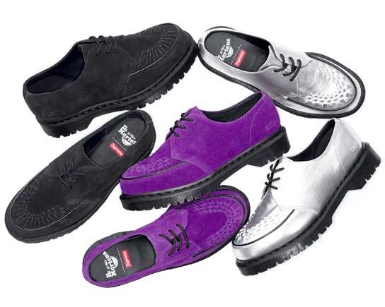 In uno degli ultimi drop settimanali del 2023, Supreme New York ha voluto includere anche la sua ultima collaborazione con Dr. Martens. Si tratta di una versione rivisitata della Ramsey Creeper, proposta in tre colorway (nero, viola, argento) realizzate in suede e pelle metallizzata, con loghi pressati e intrecci a contrasto. Essendo entrambi i brand sotto l’ombrello di VF Corp. negli ultimi anni la partnership tra Supreme e Dr. Martens ha goduto di particolare libertà creativa, con design articolati e progetti importanti che in passato hanno visto anche il coinvolgimento del marchio giapponese Undercover. Tutte e tre le colorway della Ramsey Creeper x Supreme sono state rilasciate in esclusiva da Dr. Martens online e dal marchio americano nei suoi store in tutto il mondo.