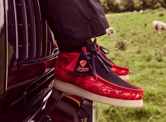 Un legame profondo unisce Popcaan con Clarks Originals. Per la sua prima collaborazione con il brand, l’artista reinterpreta la Wallabee Boot. Un’icona reinventata per la generazione di oggi. Ribelle nella musica come nello stile, l’artista esprime la sua audace estetica attraverso una vivace stampa camouflage. La scarpa riporta la scritta “Unruly” e i fobs co-brandizzati, in colore rosso e nero, con le iconiche cuciture artigianali e suole in crêpe, tipiche di Clarks.