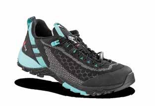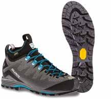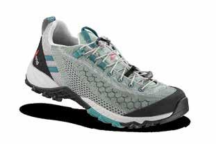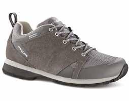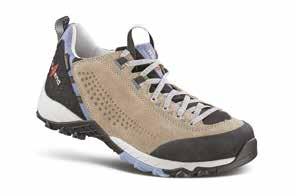 Trezeta pensa alla donna che ama muoversi in montagna in libertà e per questo ha sviluppato questa scarpetta leggera e versatile. Pensata per hiking e trekking veloci, si adatta perfettamente ai terreni misti da affrontare con carichi leggeri. Sviluppata attorno a una forma specifica per il piede femminile, presenta delle imbottiture anatomiche per una massima precisione di calzata. Il collarino è abbassato sotto la linea del malleolo per un miglior grado di comfort anche in caso di utilizzo intenso. Tomaia in pelle scamosciata e mesh con sistema di allacciatura ottimizzato per un perfetto avvolgimento del piede. Intersuola in microporosa a densità differenziata per prestazioni durature nel tempo, dissipazione degli urti con il terreno e massima affidabilità. Suola Vibram Predator pensata per le attività di hiking, con tasselli ampi per trazione ottimale su superfici miste, spaziati per un più efficace scarico dei detriti.