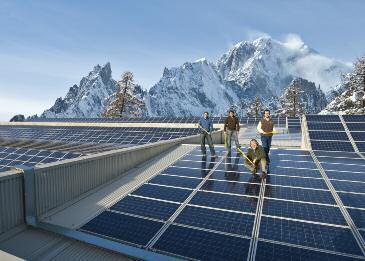 Il sole ci fornisce gratuitamente luce e calore. In un giorno intero esso invia sulla Terra tanta energia quanta ne viene utilizzata dall’intera popolazione del pianeta in un anno, basta pensare che ogni metro quadrato del fulcro del nostro sistema planetario emana un’energia pari a quella prodotta in un’ora da 6.300 litri di gasolio da riscaldamento. Riuscendo a utilizzare in maniera diretta meno di un centesimo di quest’immensa fonte di energia, si potrebbero risolvere i numerosi problemi energetici del nostro pianeta. Per questo motivo Grivel, una delle più antiche aziende produttrici di attrezzature ed equipaggiamenti per l’alpinismo, ha posto sulla copertura di 7.000 mq della fabbrica, situata a Courmayeur ai piedi del Monte Bianco, un numero di pannelli fotovoltaici tale da coprire una superficie equivalente a quella di un campo da