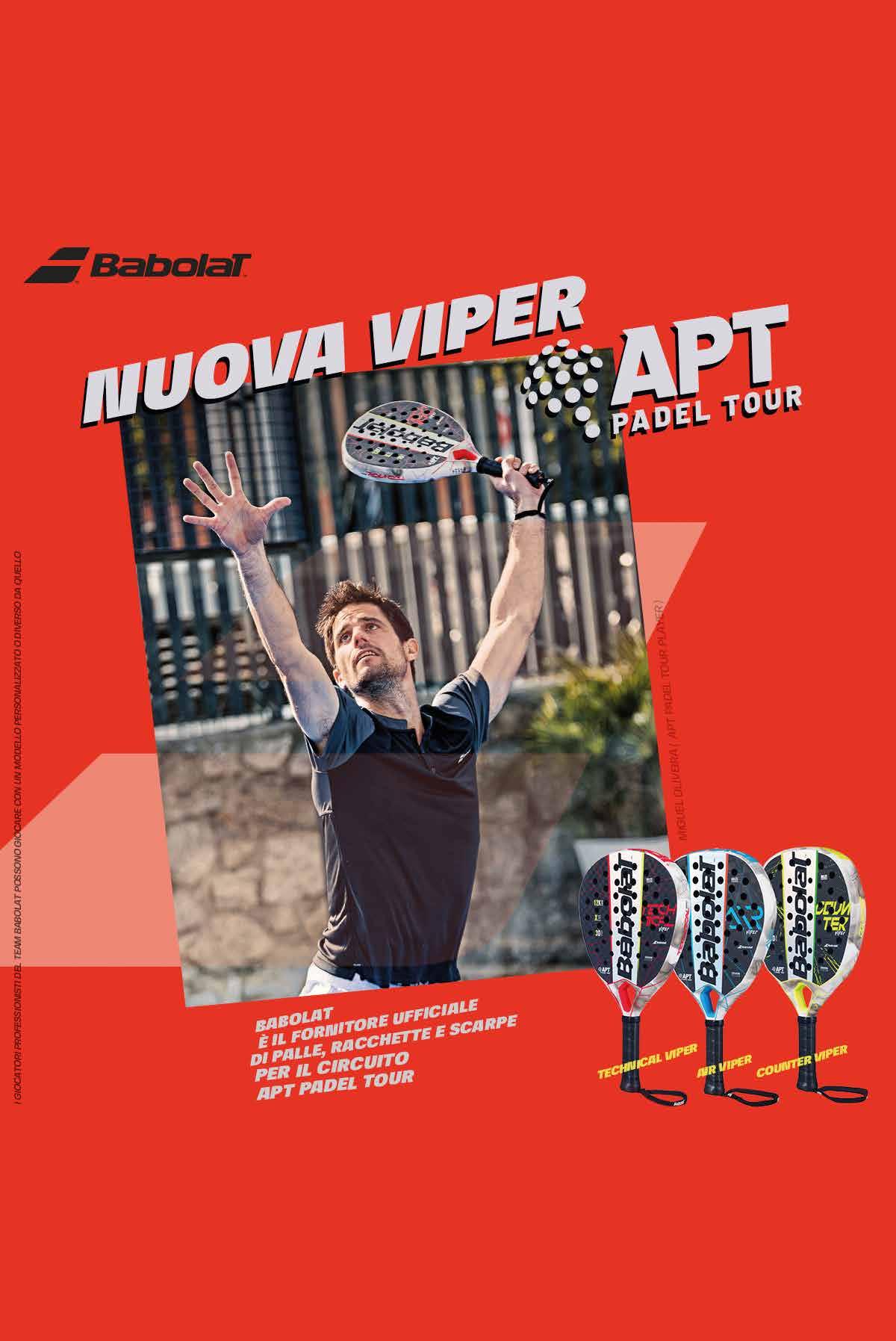 La nuova gamma Viper 2022 di casa Babolat propone delle pale unite da caratteristiche comuni con una potenza esplosiva, un design e un look moderno. Questa linea nasce dallo studio e dall’osservazione dei giocatori di padel e delle loro esigenze. In questo senso, le racchette sono realizzate attraverso una tecnologia avanzata e materiali che garantiscono un elevato comfort, precisione, tolleranza e maneggevolezza. Perfetta per i giocatori avanzati, la gamma offre una scelta di tre diversi modelli: Technical Viper, Air Viper e Counter Viper.