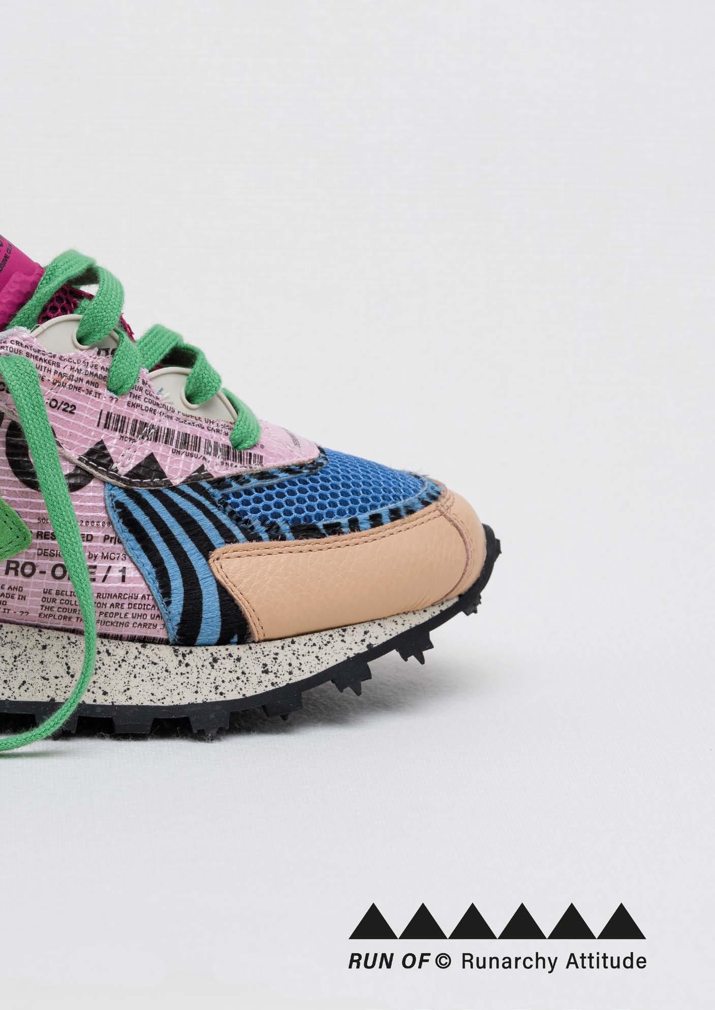 La seconda collaborazione tra Veja e Marni mostra tre nuove proposte inedite in ulteriori colorazioni. Qui, le V-10 in pelle e la versione high-top V-15, sono enfatizzate da un colorato motivo “scribble” che anima la tomaia. Questa partnership ha dato vita a una collezione che combina artigianale e lavoro industriale: volutamente la scarpa sinistra è diversa da quella destra (e viceversa). La pelle utilizzata per questa proposta è stata reperita in farm Uruguayane e lavorata in Brasile in una conceria approvata con Gold-certificate dal Leather Working Group.