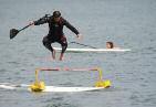 SYSTE M 2 0 PAR K - Queste innovative soluzioni sono state ideate nel 2008 dall’azienda tedesca Sesitec (che a ogg i ha installato oltre 30 cablepark e venduto più di 40 System 2 0 Park in tutto il mondo) e utilizzate in eventi internazionali Sono proposte in Italia da DPS (distributore anche di brand leader nel wake, vedi pag ina seguente) che fa capo a Marco Gerosa È lo stesso Marco a spiegarci i dettagli dei System 2 0 Park: “Si tratta di mini cablepark che, utilizzando impianti ridimensionati e appositamente progettati, danno la possibilità anche a piccoli investitori di proporre un servizio ad alta fruibilità e costi contenuti sia in termini di investimento che di gestione” L’impianto System 2 0 Park lavora con 2 soli pali al posto dei 5/6 utilizzati nelle strutture più grandi Può ospitare un solo rider alla volta, consentendo di seguire il cliente su tutto il percorso e ridare il bilancino immediatamente in caso di caduta L’impianto è quindi per fetto per chi si vuole avvicinare al wake ma anche per i pro, che possono tentare nuove manovre senza il timore, se cadono, di dover nuotare fino alla star ting area