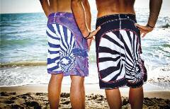 Boardshor t realizzato al 100% in microfibra peach È disponibile in svariate colorazioni, tra cui chevron (a sinistra) e black (a destra), e con un prezzo variabile tra i 54 e i 67 euro