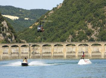 L’IMPIANTO DI PASTRENGO - Un esempio di riqualifica tramite System 2 0 Park è a Pastrengo, in provincia di Verona: “Lo scorso mese abbiamo inaugurato il sistema in questa cava che in precedenza proponeva solo pesca spor tiva e servizi vari Con l’introduzione del mini-park, il lavoro è triplicato” In questo caso, tra l’altro, si parla di un impianto fisso, che può essere dotato di strutture in acqua (jump, box, slide), zone relax a riva e in acqua, scuola e nolegg io, ristorazione e servizi Ma nulla vieta a fine stag ione di smontarlo e riproporlo in altre zone Persino sulla neve, come ha agg iunto Marco: “L estrema versatilità di questi impianti consente loro di essere impiegati anche sulla neve con la stessa modalità dell’uso su acqua È suf-