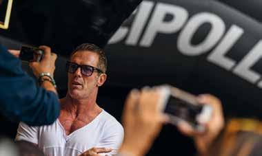 Mario Cipollini, al suo stand in un bagno di folla e giornalisti