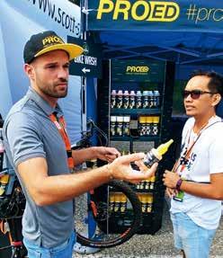 Non solo pulizia, anche protezione Il primo intervento, secondo Andreas Inama di ProEd, consiste nella pulizia generale della bici, che andrà prima di tutto spruzzata con Pro Novakleen S da cima a fondo. Questo prodotto scioglie lo sporco, quindi sarà sufficiente lasciarlo agire per un minuto dopo di che risciacquato con acqua. Se permangono delle parti più sporche, è possibile utilizzare Pro Multi Foam detergente bici, che solleva lo sporco dalla superficie. Dopo 30 secondi, si passa la microfibra e si asciuga il tutto. Finita la pulizia del telaio si passa alla sua prote -