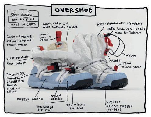 Nata nel 2012 con la release della Mars Yard Shoe, la collaborazione tra Nike e il visionario artista designer Tom achs ha dato vita al progetto i eCra t, uno degli apici raggiunti dal brand di Beaverton a livello di design e ricerca del prodotto. A circa un anno dalla release della MYS 2.0, versione “aggiornata” del primo modello, Sachs ha presentato al pubblico la Mars Yard Overhoe, una speciale scarpa sviluppata sul progetto MYS che integra nuovi elementi per adattarla al clima invernale. Tra questi una nuova suola completamente ridisegnata per aumentarne il grip ed una cu a in nylon Dyneema, recentemente utilizzato anche da Stone Island, regolabile tramite degli elastici per adattarne il fit.
