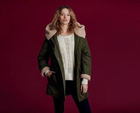 Per lei: caban in eco pelliccia imbottito con ovatta Thermore Ecodown che rende il capo caldo anche alle più basse temperature senza rinunciare allo stile e all’eleganza della pelliccia. Interno trapuntato e distintiva costruzione del capo a Y rovesciata.