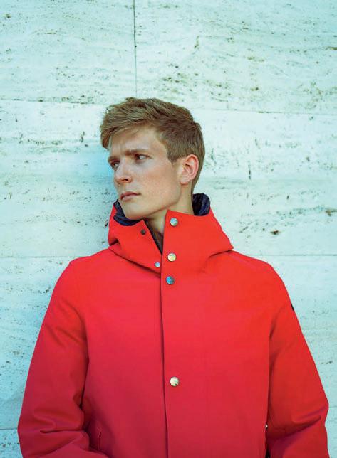 Per lui: il peacoat in tessuto laniero tecnologico permette performance di resistenza all’acqua, traspirabilità del capo, protezione dal vento e termoregolazione del capo. L’interno è staccabile e trapuntato con ovatta e nylon prodotto dal riutilizzo di bottiglie di plastica. Bottoni gommati logati.
