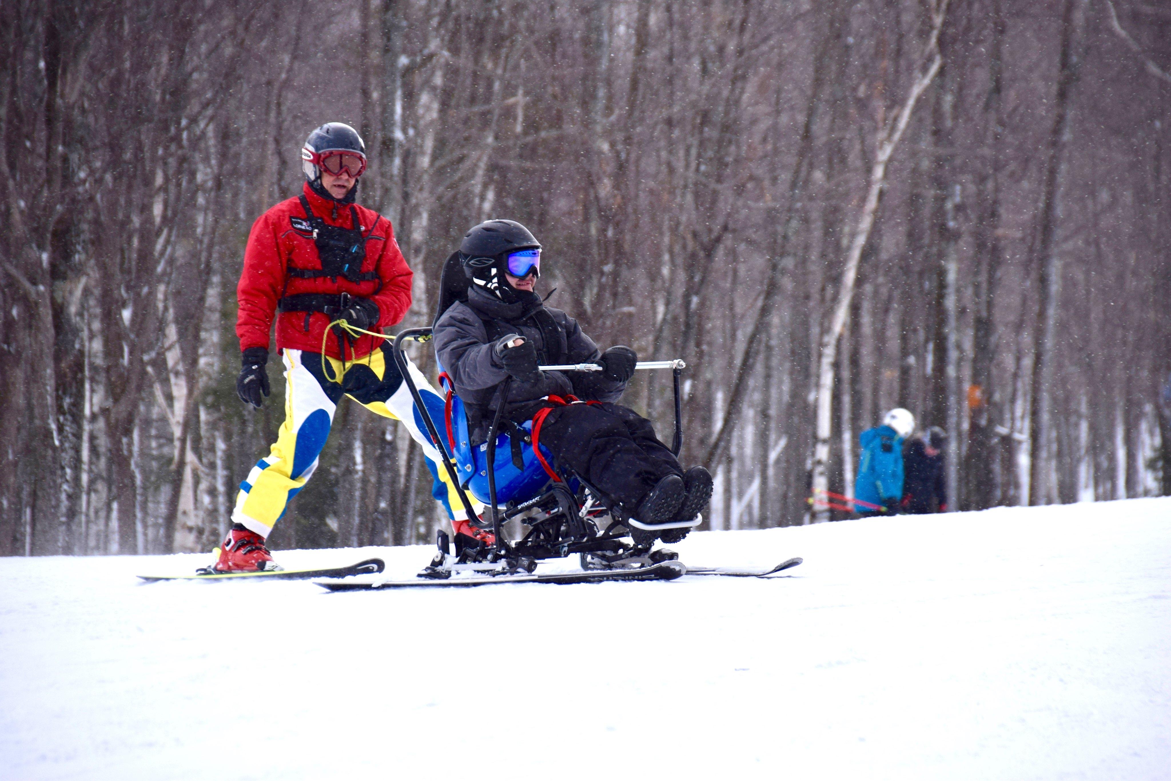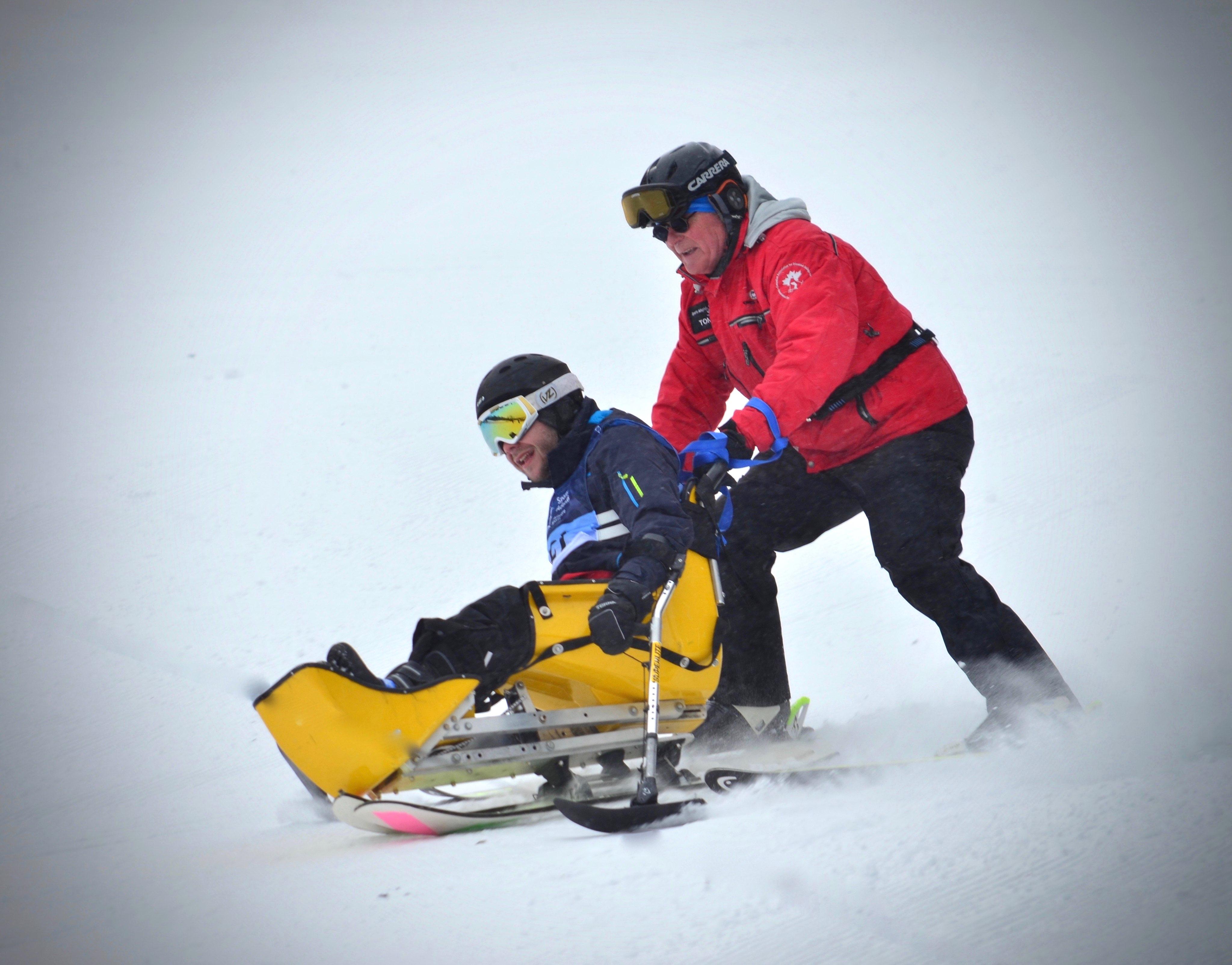 Cet hiver, nous avons reçu un don de la part de la Fondation Fusée pour que nous puissions acquérir le tout nouveau Snow Kart. MarcOlivier Savard, un participant FSA depuis 4 ans, a été le tout premier à l’utiliser. Cet équipement lui a permis de skier librement et en toute autonomie pour la première fois. Avec une seule main, Marco a dévalé les pistes de Owl’s Head et ce, à partir du sommet. Bravo