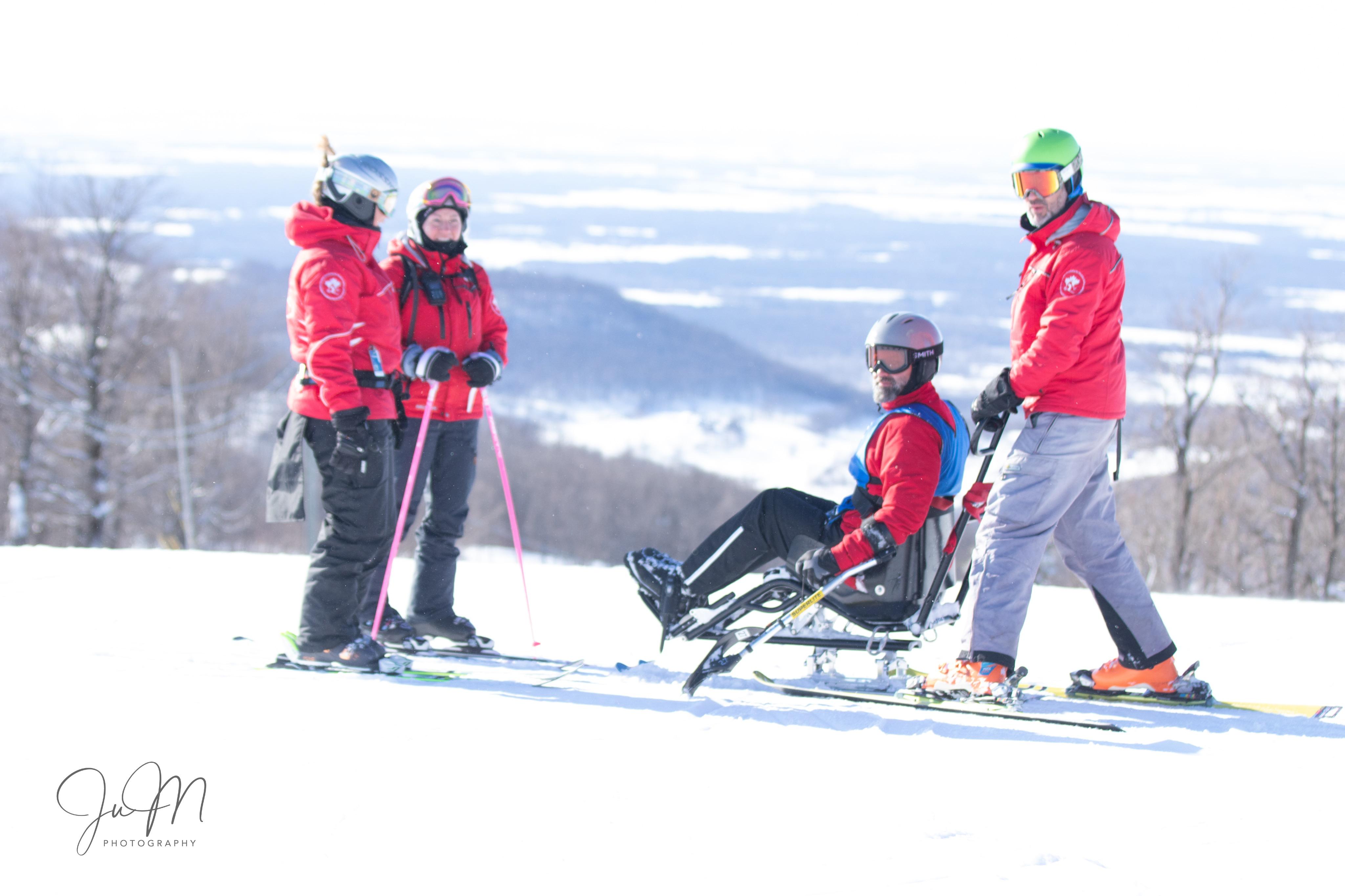 Depuis quelques années, nous offrons nos services aux écoles afin qu’elles puissent inclure les jeunes qui vivent en situation de handicap lors des sorties scolaires. Malheureusement, plusieurs centres de ski ne sont pas équipés ou habilités à acceuillir cette clientèle. Dans la majorité des cas, les jeunes sont retournés à la maison pendant que leurs collègues de classe profitent de la sortie. C’est une triste réalité et c’est pourquoi nous offrons nos services auprès des écoles et des centres de ski. Nous accueillons également les groupes de personnes handicapées qui désirent organiser une journée de ski. Ce fut le cas avec l’École internationale du Phare de Sherbrooke qui s’est déplacé à Owl’s Head au mois de mars 2019.