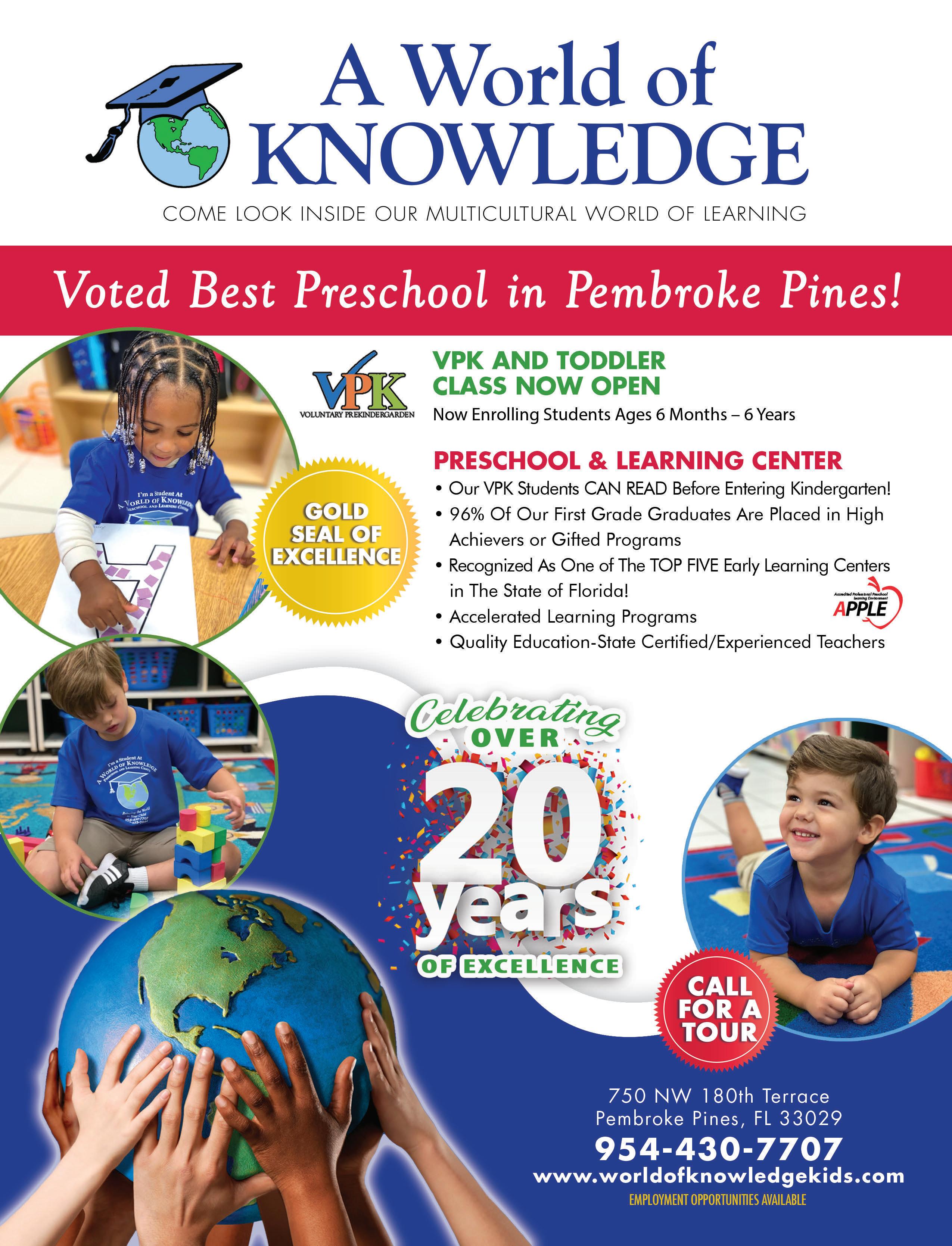 Since this is our Back-to-School issue, you will find everything you need for your child’s return to the classroom. Where to sign up for sports, what afterschool programs are available, where to have a birthday party and so much more. We also have adult activities for parents looking to have some fun. Don’t forget, the city of Pembroke Pines puts on tons of wonderful FREE events for its residents. For example, the Touch-A-Truck Vehicle Expo is a fun way for your kids to climb in and experience big trucks up close. Boo-Ville is another fun event; this is a safe way for kids to Trick-A-Treat. Check out our Events Section for all the details.