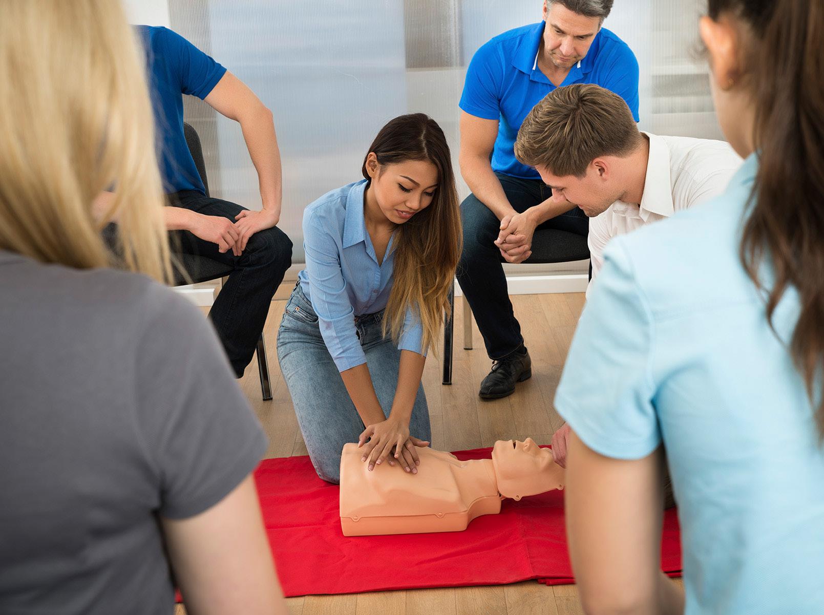 In class, students learn how to manage illness and injuries in the first few minutes of an emergency until professional help arrives. The class also includes AED (automated external defibrillator) instruction.