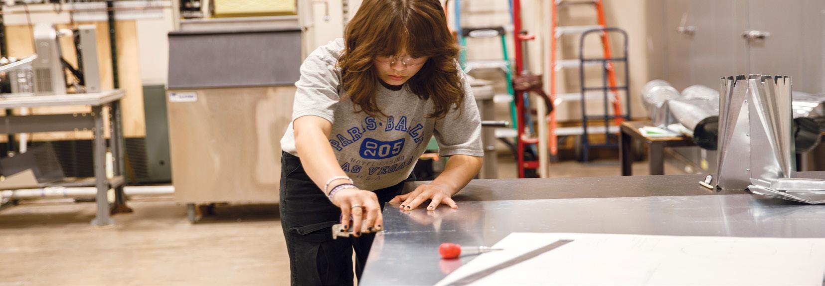 Students in the carpentry program learn how to work on residential and commercial construction, including estimating, framing, roofing, interior finishing and cabinetmaking.