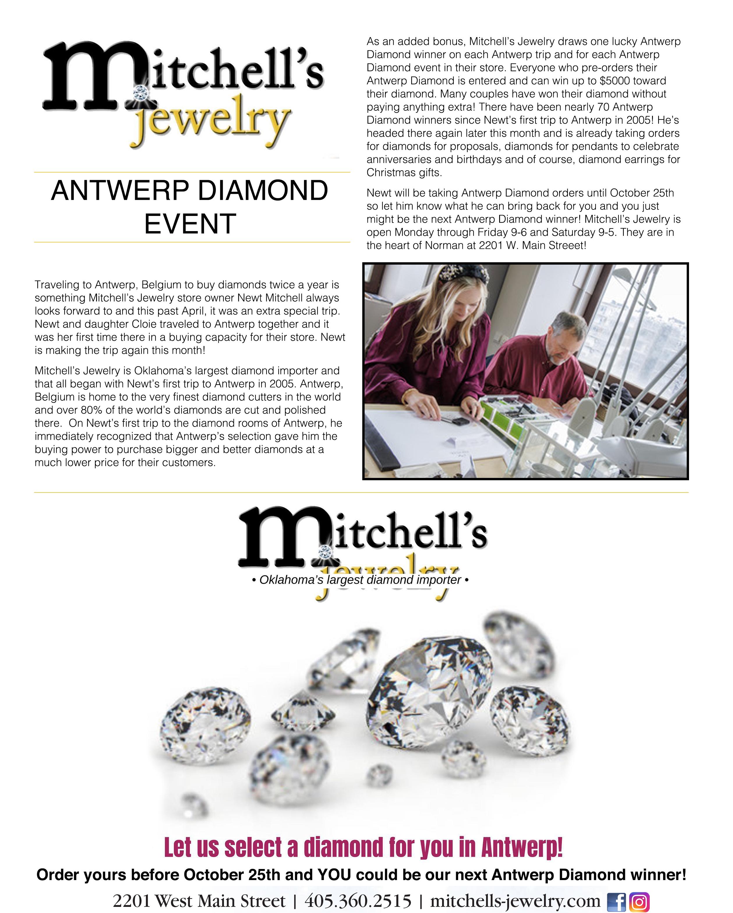 28 Rallying for Kids HBC Champions Foundation hosts event to benefit children. 54 Understanding Your Risk The Oklahoma Breast Center offers genetic testing to assess cancer risk. 56 Kidoodles Norman’s beloved children’s boutique reopens in new location. 58 Mitchell’s Jewelry You could be the next Antwerp Diamond Winner at Mitchell’s. 60
