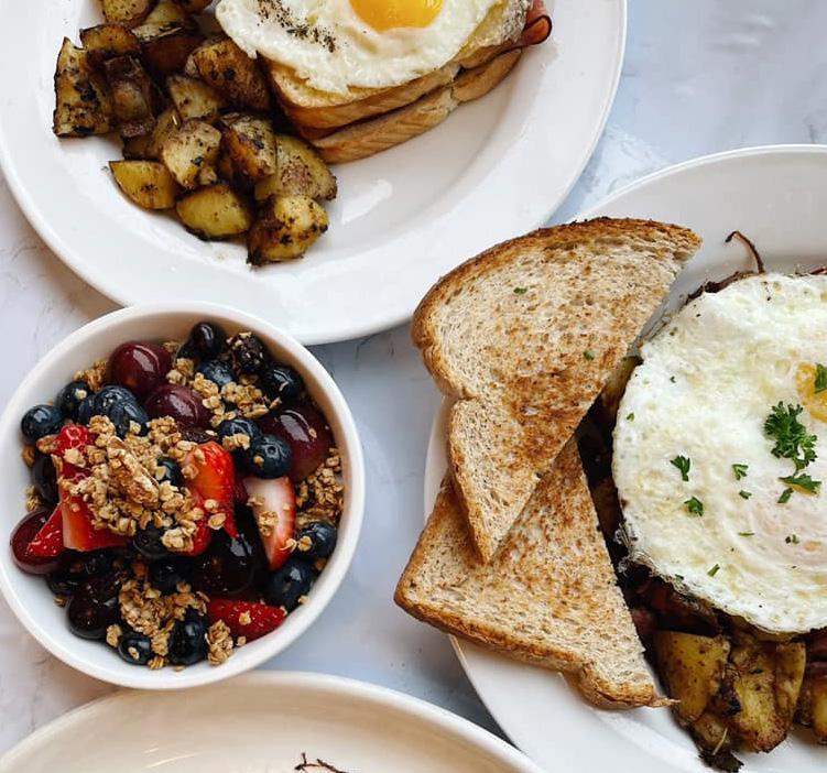 La Baguette serves authentic French food in a fast, casual setting. During the morning hours, until 11 a.m. on weekdays and until 2 p.m. on weekends, eggs benedict and crème brulee French toast are fan favorites, but you can never go wrong with their Bonjour Paris and good old-fashioned pancakes. Their hearty Croque Madame served on sourdough bread with roast potatoes is great for brunch, especially when paired with one of their piping hot coffees or teas. Get one of their sweet or savory croissants, cinnamon rolls, breads or other bakery items to-go and you’re set for the day.