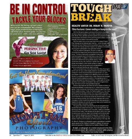 Tibia fractures: Career ending or bump in the road? With the fall sports season just around the corner, physicians will see a natural increase in the number of patients entering their offices. Many athletes and their parents are prepared for the normal sprains and strains of the upcoming sports season, but are naturally nervous about more serious injuries. With the recent injury to the lower leg of the Indiana Pacers’ Paul George during national team training — which brought back memories of Kevin Ware’s NCAA tournament injury from last year — broken shin bones and their impact on an athlete’s immediate and long-term participation have garnered interest. From an anatomic standpoint, the shin is made up of the tibia (the larger bone) and the fibula (the smaller bone). The tibia is particularly susceptible to being fractured during sports due to the fact there is very minimal tissue covering it. In addition, it bears the brunt of both direct and indirect force during athletic activity. These injuries are not only very common in sports such as soccer and football in which direct contact is made with the bone, but also during sports such as basketball in which an awkward landing can lead to a break. If you or someone you know has broken their tibia, the prognosis for such an injury varies largely based on several factors. First, a fracture in which the bone breaks through the skin (i.e. compound/open injury) is treated much differently than one in which the skin is unscathed (closed injury). Open fractures are emergencies and must be cleaned out quickly in the operating room in order to decrease the chance of infection. These types of injuries generally have a higher complication rate, take a longer time to heal, and have a much more guarded prognosis. Second, tibia fractures can either be due to repetitive stress (i.e. endurance athletes) or acute trauma (i.e. a blow during a soccer game). Acute injuries are more likely to require surgery than those due to repetitive stress. Finally, the fracture pattern (i.e. how many pieces the bone has been broken into, how far apart the pieces are, proximity of the fracture to the joint) determines treatment. For minor fractures, this could be as simple as several weeks in a cast. For more serious injuries, this could mean treatment with a form of surgery in which a solid (for athletes who are done growing) or flexible (for athletes who are still growing) metal rod is inserted into the bone to align it and allow healing. The good news is that most tibia fractures are straightforward injuries that occur away from the joint. Thus, the major factor determining a return to sports is not if, but when, healing is complete. Once the bone heals, most athletes will be able to return at or near the same level once they regain their strength and functional abilities. A carefully designed physical therapy plan is essential. As a result, although initially disheartening, a tibia fracture does not necessarily mean the end of career, but rather a bump in the road. ✪ Dr. Nirav K. Pandya is a orthopedic surgeon specializing in pediatric sports injuries at the Children’s Hospital in Oakland. He sees patients and operates in Oakland and our facility at Walnut Creek.