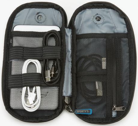 This custom designed battery organizer has just enough room for the essentials. It’s easy to grab and go when all you need is a battery and cables. Measures 9"h x 4.5"w x 2"d when fully loaded. The ID holder can be removed to make the battery organizer into a Gear Mod compatible with Sporty’s Flight Gear Bags. 2053A $14.95