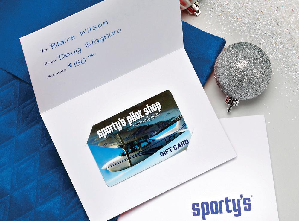 A gift card from Sporty’s lets the recipient choose the perfect gift. Gift cards are sent with a copy of each of our catalogs enclosed in an elegant presentation box. A card indicating the sender is also included. Gift cards may be redeemed for merchandise on our website, by phone, by mail, or in person at our retail store.