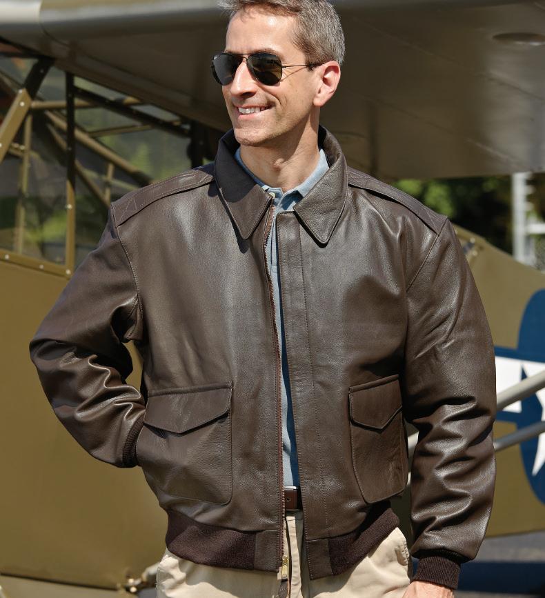 Modern Leather Flight Jacket This updated design was to replace the classic A-2. Officially referred to as the AN-J-3, this modern jacket removed the epaulets and added a bi-swing back and underarm gusset to make it easier to move around a cockpit. Imported.