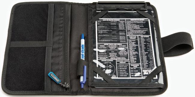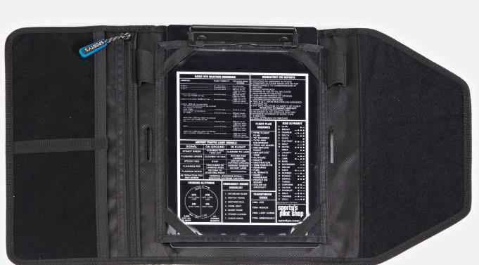 Flight Gear Tri-Fold Kneeboard The solid clipboard is great for copying clearances and doubles as a quick reference tool. Elastic straps are attached at the corners and are perfectly spaced for holding an iPad 9.7" down to the clipboard. 7004A $34.95
