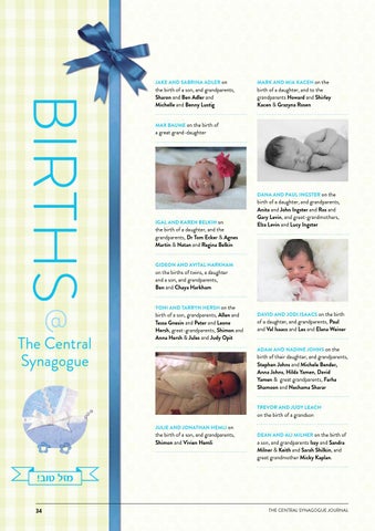 DAVID AND JODI ISAACS on the birth of a daughter, and grandparents, Paul and Val Isaacs and Les and Elana Weiner ADAM AND NADINE JOHNS on the birth of their daughter, and grandparents, Stephen Johns and Michele Bender, Anna Johns, Hilda Yamen, David Yamen & great grandparents, Farha Shamoon and Nechama Sharar