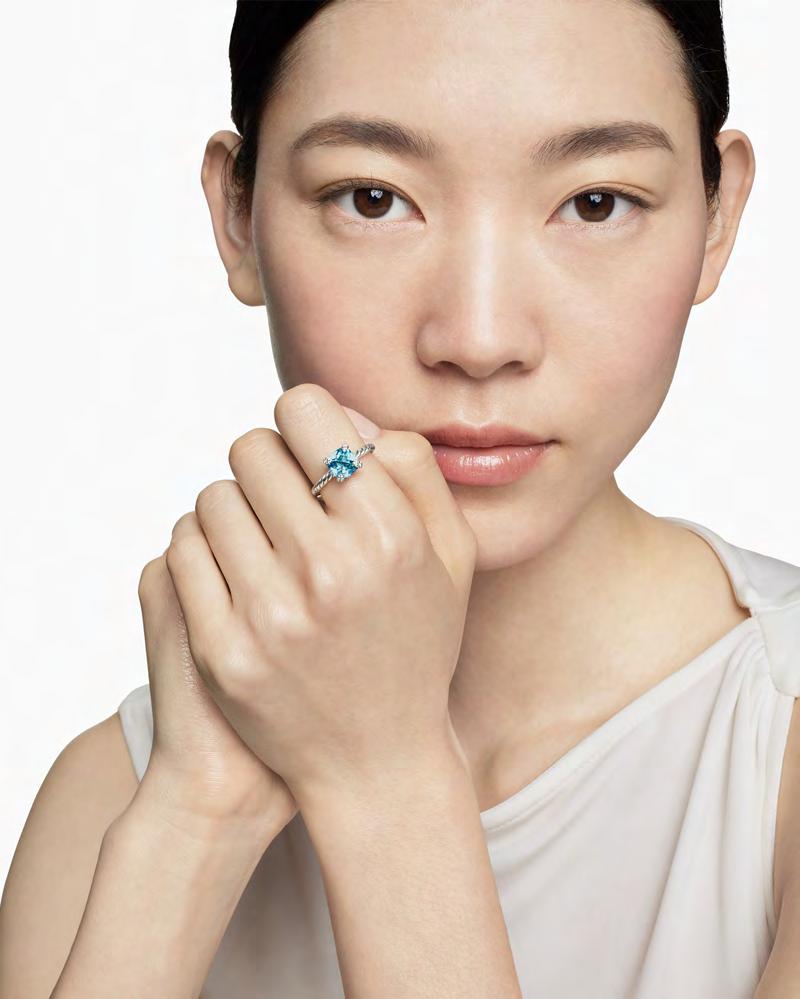 Chatelaine ring in sterling silver with blue topaz and diamonds, $475, davidyurman.com