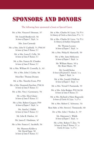 SPONSORS AND DONORS The following have sponsored a Jesuit or Special Guest: Mr. & Mrs. Vincent F. Brennan, ‘57 Mr. Joseph Burakevich, ‘56 In honor of Eugene C. Boyle, ‘56