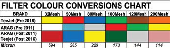 Dual sprayboom pressure filters, 50 and 100 mesh to eliminate individual nozzle strainers and blocked nozzles.