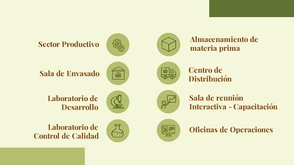 • 8 силосів по 8500 літрів готової продукції. Після того, як партія закінчена в реакторі, здійснюється контроль якості, як це встановлено, а потім вона поміщається у вищезгадані силоси з відповідними мішалками, очікуючи попиту з боку сектору пакування.