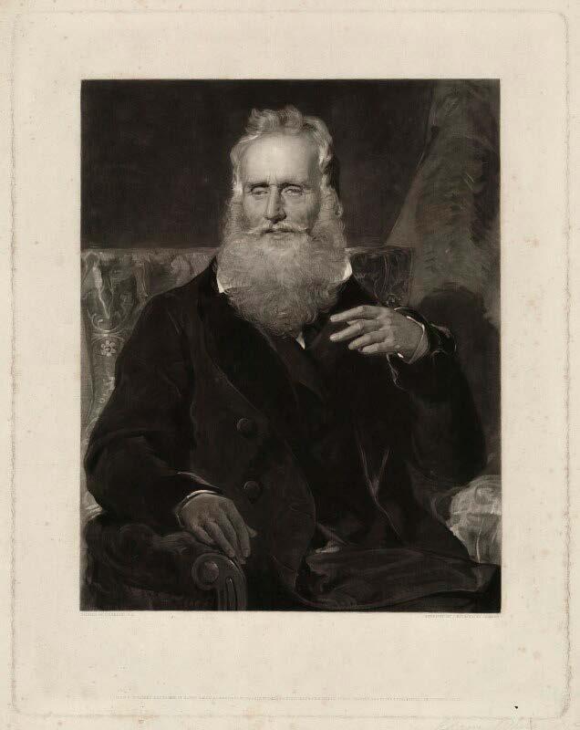 IMAGE DESCRIPTION: An older white man with a voluminous white beard. He sits comfortably, facing us and with his left hand raised as if to emphasise a point he is making or to gesture towards his beard. Beneath halfopen lids, his left eye looks in our direction while his right eye is cast downwards and askance.