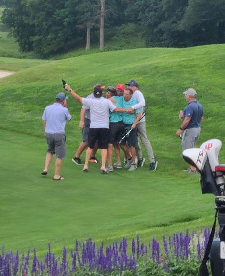 We were blanketed by smoke on June 8, but came away with a convincing win at home: 30½ to 5½ over Regency Country Club. Mike Saylor/Mark Waters, Mark Crook/ Walter Burkhardt, Pat Noble/Don Bisenius, Kirk Reade/Jesus Medrano, George Alapas/Paul DiRenzo, and Mike Cifrino/ Rusty Roesch all delivered three points. For the match, every two-man team won at least two points. Notable scores included Mike Saylor (69, net 74) and Mark Crook (77, net 73). Mark Crook and Walter Burkhardt won the sweeps with a net 62.