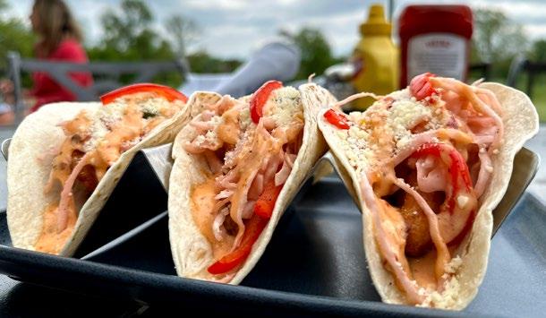 Like you, with each new menu, I definitely have favorites. This time around, I love the Mahi tacos on the Bar Fare menuthe flavor is amazing. Oddly enough, the white pizza might be my favorite pizza so far. It’s simple and to the point, but can stand up to a glass of wine or draft beer. The cabernet poached pear salad with its golden-brown fried goat cheese and combination of colors is at the top of the list as well. As for the dinner menu, I consider the green curry and the cedar plank salmon to be a couple of the best entrees. I love curry, and after listening to feedback from the membership and doing my research, I wanted to offer more vegetarian options. As for the salmon, who doesn’t love a good cedar plank salmon? That’s just a fun dish all the way around.