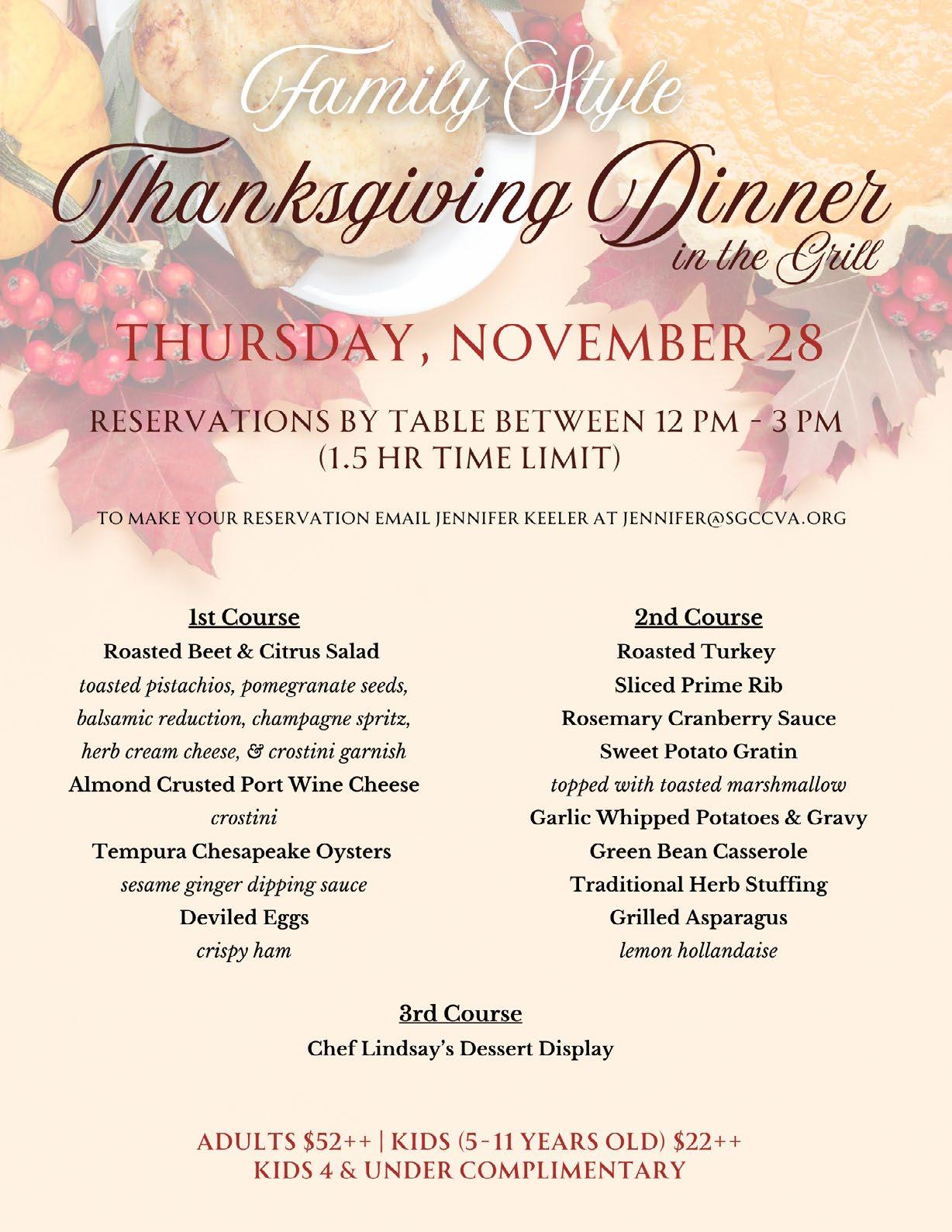 Family Style Thanksgiving Dinner in the Grill 12:00 - 3:00 PM