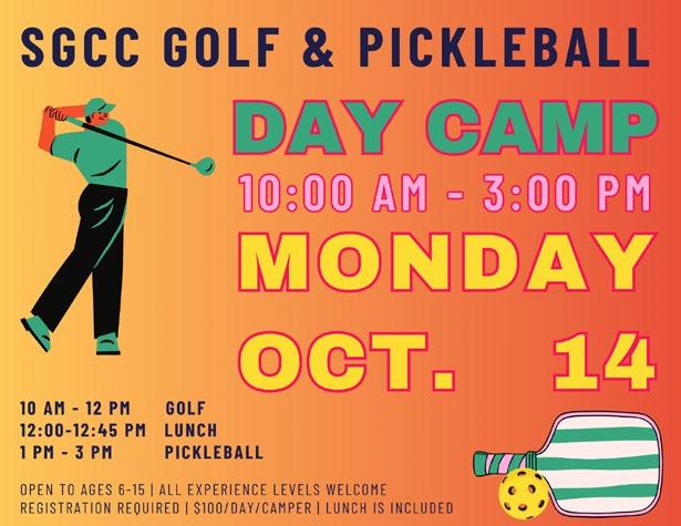 Fall is one of the best times of year, so enjoy the cooler weather and the beauty of nature’s foliage. I look forward to seeing you around SGCC and sharing all the wonderful things this season and the Club have to offer.